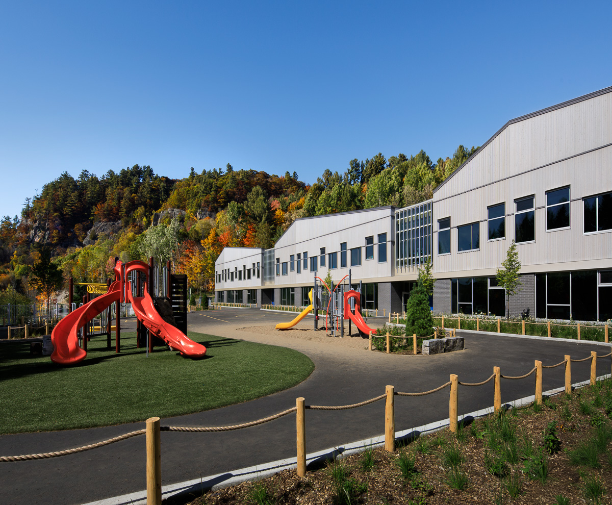 Nouvelle école primaire de 6640 m2 avec 24 classes, 4 maternelles, 4 classes spécialisées, 4 classes ressources et service de garde, gymnase et salle polyvalente.